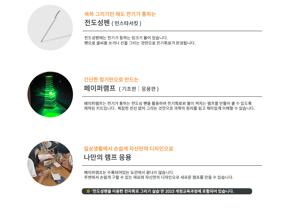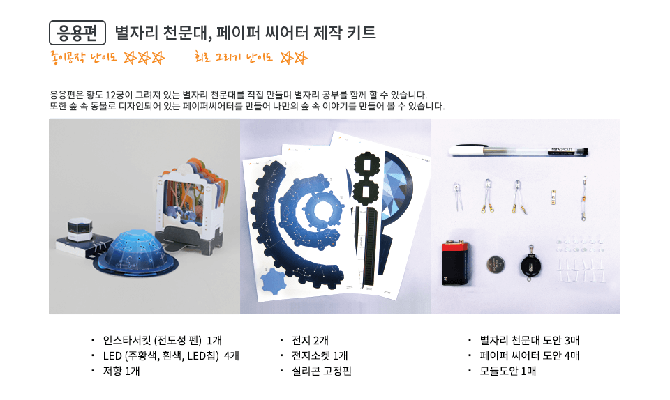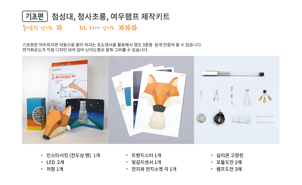 페이퍼 램프 키트전도성펜을 통해 전기회로를 이해하고 창의공작활동을 할 수 있도록 제작되었습니다.